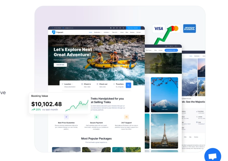 Tripcart is an all-in-one SaaS platform designed specifically for tour operators and travel agencies. Similar to Shopify but built exclusively for the travel industry, Tripcart enables travel companies to create a travel website instantly, add multi-day or single-day tours, accept payments via local gateways, and manage bookings, reviews, and customer communication.